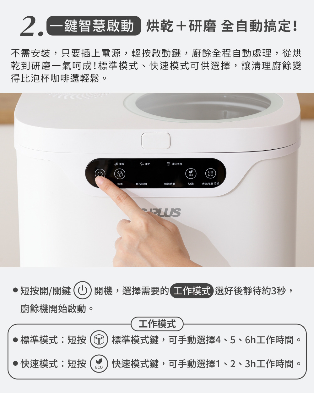 .三段智慧模式、標準、快速、堆肥