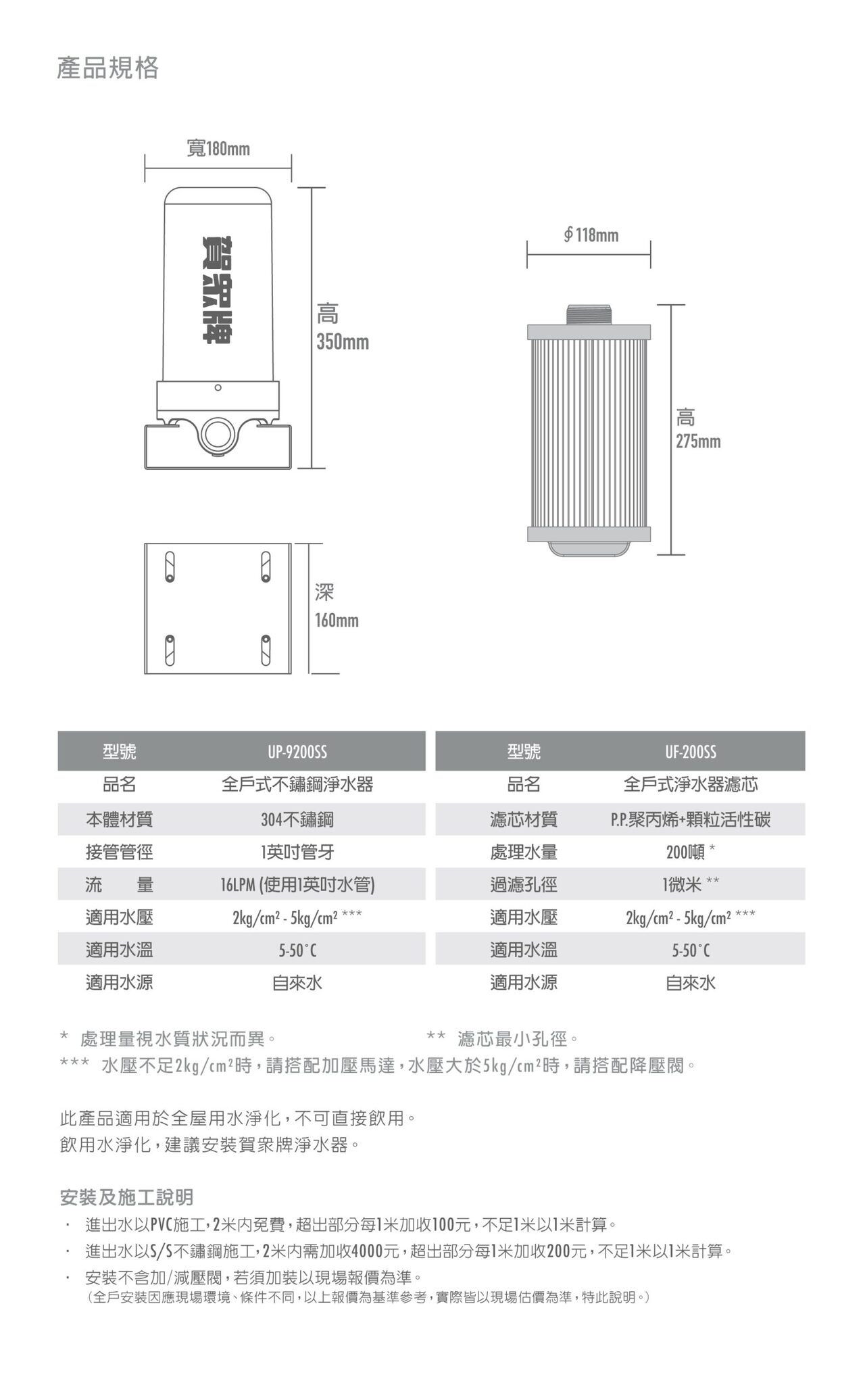 UP-9200SS 全戶式不鏽鋼淨水器
