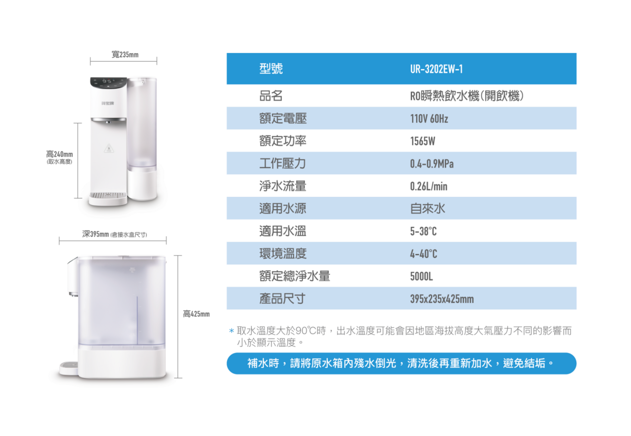 | 尺寸 | 寬235 x 深395 x 高425 mm(含接水盒) |