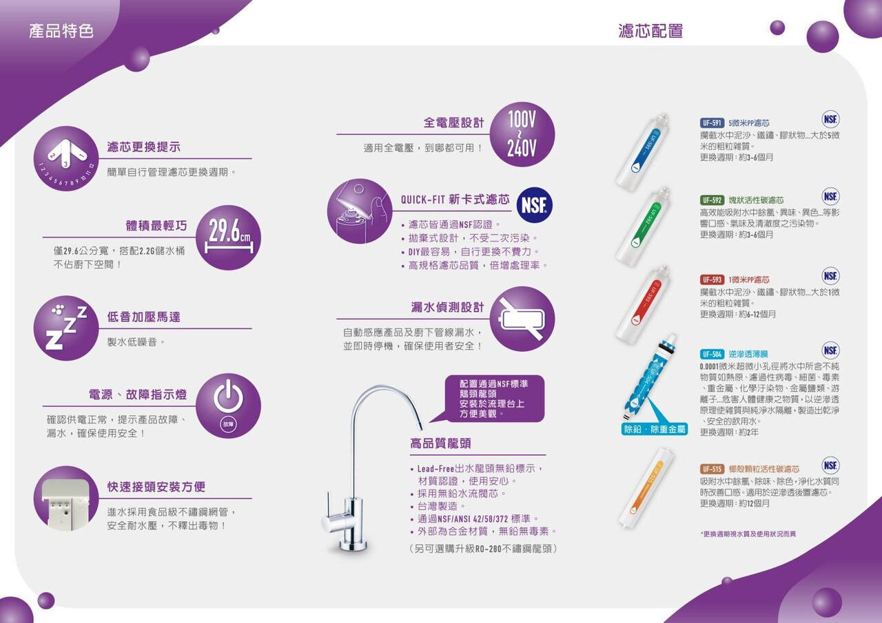 | 配件 | 儲水桶、台灣製造 NSF認證 無毒無鉛出水龍頭 | |