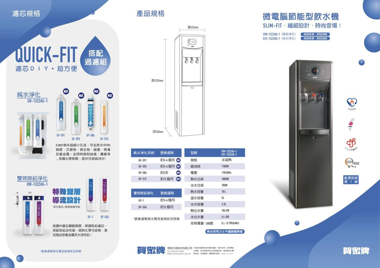 | 尺寸 | 寬335 x 深520 x 高1325 mm(含接水盒) |