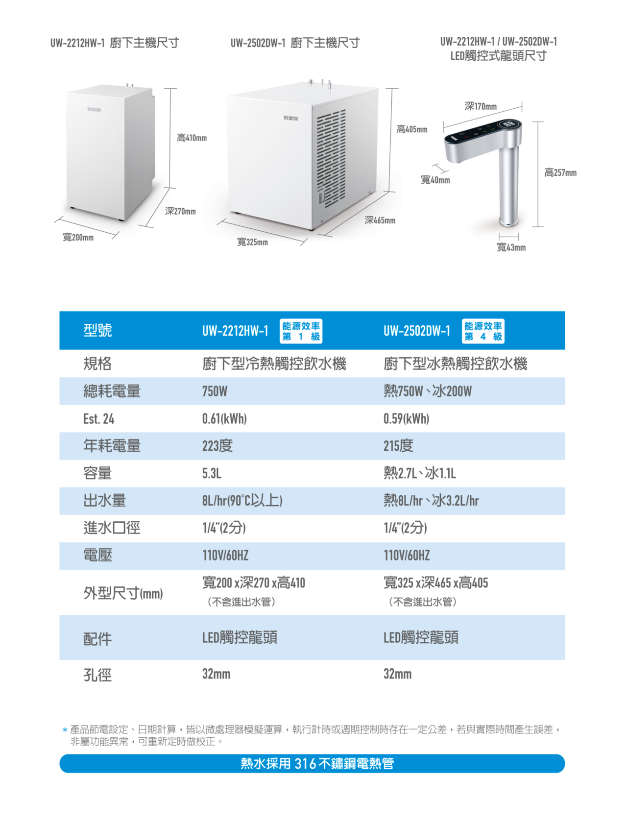 | 品名 | LED觸控式廚下型節能冷熱飲水機 |